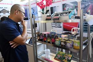 (251126) -- LA HABANA, 26 noviembre, 2025 (Xinhua) -- Imagen del 25 de noviembre de 2025 de un hombre observando productos exhibidos en un estand de China durante la celebración del Día de China en la segunda jornada de la 41ª Feria Internacional de La Habana (FIHAV 2025), celebrada en el recinto ferial Expocuba, en La Habana, capital de Cuba. El Gobierno chino aspira a impulsar el desarrollo de las relaciones comerciales con Cuba, afirmó el martes Hua Xin, durante la segunda jornada de la 41ª FIHAV 2025. (Xinhua/Joaquín Hernández) (jh) (jg) (da) (vf)