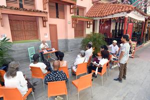 (251017) -- LA HABANA, 17 octubre, 2025 (Xinhua) -- Imagen del 16 de octubre de 2025 del investigador cubano, Marcos Antonio Tamames Henderson (atrás), pronunciando un discurso durante la presentación de su libro digital "La Habana en el Barrio Chino (Calles y callejones)", en La Habana, capital de Cuba. El libro digital "La Habana en el Barrio Chino (Calles y callejones)", del investigador cubano, Marcos Antonio Tamames Henderson, fue presentado el jueves en la Cuchilla del Barrio Chino, como parte de las celebraciones por el 65 aniversario del establecimiento de relaciones diplomáticas entre China y Cuba. (Xinhua/Joaquín Hernández) (jh) (jg) (da) (ce)