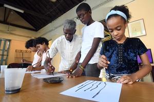 (250728) -- LA HABANA, 28 julio, 2025 (Xinhua) -- El pintor y calígrafo, Alexis González (c), imparte un curso de pintura tradicional china a un grupo de niños en la Casa de las Artes y Tradiciones China, en La Habana, capital de Cuba, el 28 de julio de 2025. Un grupo de niños cubanos asiste por estos días a un taller de pintura tradicional china ofrecido en el Barrio Chino de La Habana como parte de las actividades que se organizan en el período vacacional. (Xinhua/Joaquín Hernández) (jh) (oa) (ah) (vf)