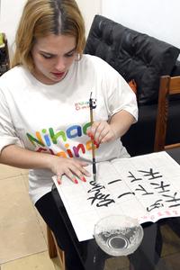 (250524) -- LA HABANA, 24 mayo, 2025 (Xinhua) -- Imagen del 23 de mayo de 2025 de la joven Alexandra García, estudiante de idioma chino en el Instituto Confucio de la Universidad de La Habana, realizando una caligrafía china sobre papel en su casa, en la localidad de El Vedado, en La Habana, capital de Cuba. García, reciente ganadora de la edición cubana del concurso Puente Chino en la categoría de universitarios, valoró de manera positiva la postura de China y Cuba ante el unilateralismo. (Xinhua/Joaquín Hernández) (jh) (jg) (da)