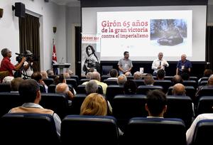 (260415) -- LA HABANA, 15 abril, 2026 (Xinhua) -- Imagen del 14 de abril de 2026 del director del Centro Fidel Castro Ruz, el historiador René González (2-d), participando en la presentación del libro "Playa Girón. A 65 años de aquel abril socialista" durante el taller "Girón: 65 años de la victoria contra el imperialismo", en el Centro Fidel Castro Ruz, en La Habana, capital de Cuba. Historiadores, investigadores y veteranos combatientes cubanos rememoraron el martes la Victoria de Playa Girón, una batalla que en menos de 72 horas selló la derrota de una brigada mercenaria, organizada y financiada por Estados Unidos para invadir a Cuba, y que hoy se estudia como símbolo de resistencia antiimperialista en la isla. (Xinhua/Joaquín Hernández) (jh) (ah) (ra) (vf)