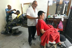 (250709) -- LA HABANA, 9 julio, 2025 (Xinhua) -- Peluqueros cortan el cabello a clientes, en La Habana, capital de Cuba, el 9 de julio de 2025. El creciente sector privado, renacido al calor de las reformas que impulsa el Gobierno de Cuba, comienza a dar frutos que respaldan a la economía de la isla, según la opinión de emprendedores. (Xinhua/Joaquín Hernández) (jh) (ah) (ra) (vf)