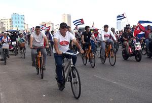 (260402) -- LA HABANA, 2 abril, 2026 (Xinhua) -- Personas participan en una movilización en el Malecón, en La Habana, capital de Cuba, el 2 de abril de 2026. Cientos de jóvenes y pioneros cubanos recorrieron el jueves el Malecón de La Habana, en la capital del país, en la Parada Juvenil Antiimperialista "Aquí, con Fidel", una movilización sobre ruedas que combinó el homenaje al líder político Fidel Castro, en el centenario de su nacimiento, con el rechazo al bloqueo que impone Estados Unidos a la isla. (Xinhua/Joaquín Hernández) (jh) (rtg) (ra) (vf)