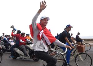 (260402) -- LA HABANA, 2 abril, 2026 (Xinhua) -- Personas participan en una movilización en el Malecón, en La Habana, capital de Cuba, el 2 de abril de 2026. Cientos de jóvenes y pioneros cubanos recorrieron el jueves el Malecón de La Habana, en la capital del país, en la Parada Juvenil Antiimperialista "Aquí, con Fidel", una movilización sobre ruedas que combinó el homenaje al líder político Fidel Castro, en el centenario de su nacimiento, con el rechazo al bloqueo que impone Estados Unidos a la isla. (Xinhua/Joaquín Hernández) (jh) (rtg) (ra) (vf)