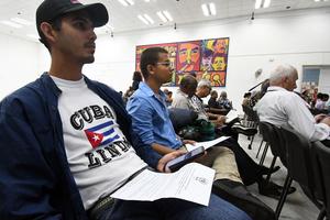 (251024) -- LA HABANA, 24 octubre, 2025 (Xinhua) -- Personas participan en un foro organizado por la sociedad civil cubana para rechazar la política de bloqueo económico, comercial y financiero de Estados Unidos contra Cuba, en la Sala Che Guevara de la Casa de las Américas, en La Habana, capital de Cuba, el 24 de octubre de 2025. (Xinhua/Joaquín Hernández) (jh) (rtg) (ra) (ce)