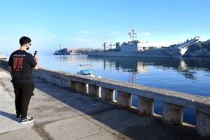 (260228) -- LA HABANA, 28 febrero, 2026 (Xinhua) -- Un hombre toma fotografías mientras un barco con ayuda humanitaria procedente de México entra al puerto, en La Habana, capital de Cuba, el 28 de febrero de 2026. El Gobierno de México continúa brindando ayuda humanitaria a Cuba a pesar de las sanciones impuestas por Estados Unidos a los países que comercian o envían petróleo a la nación caribeña. (Xinhua/Joaquín Hernández) (jh) (jg) (da)