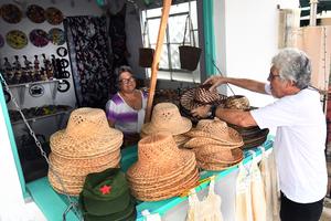(250506) -- PINAR DEL RIO, 6 mayo, 2025 (Xinhua) -- Imagen del 5 de mayo de 2025 de un hombre comprando artículos artesanales, en la localidad de Viñales, en la provincia de Pinar del Río, Cuba. La exuberante naturaleza del extremo occidental de Cuba y de manera particular de la localidad de Viñales, constituye un atractivo que el Ministerio de Turismo de la isla trata de desarrollar con la vista puesta en el mercado chino. (Xinhua/Joaquín Hernández) (jh) (jg) (ra) (vf)