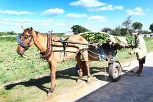 (250226) -- PINAR DEL RIO, 26 febrero, 2025 (Xinhua) -- Imagen del 25 de febrero de 2025 de un campesino amarrando hojas de tabaco a una carreta para ser transportadas a una vega, en la región de Vuelta Abajo, en el municipio San Juan y Martínez, en la provincia de Pinar del Río, Cuba. Las hojas de tabaco refulgen al sol en las verdes vegas de Vuelta Abajo, "la tierra del mejor tabaco del mundo", donde decenas de campesinos cubanos cultivan la solanácea de la que salen los mundialmente famosos puros habanos. (Xinhua/Joaquín Hernández) (jh) (jg) (da) (vf)