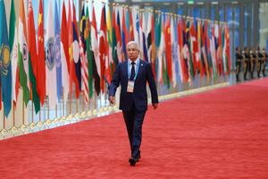 (250831) — TIANJIN, 31 agosto, 2025 (Xinhua) — El secretario general de la Organización del Tratado de Seguridad Colectiva, Imangali Tasmagambetov, llega al Centro de Convenciones y Exposiciones de Meijiang para un banquete de bienvenida, en Tianjin, en el norte de China, el 31 de agosto de 2025. El presidente chino, Xi Jinping, y su esposa, Peng Liyuan, ofrecieron el domingo un banquete en la ciudad portuaria china de Tianjin para dar la bienvenida a los invitados internacionales que se encuentran en el país para asistir a la Cumbre 2025 de la Organización de Cooperación de Shanghai (OCS). (Xinhua/Ding Haitao) (rtg) (da)