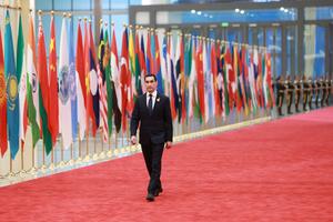 (250831) — TIANJIN, 31 agosto, 2025 (Xinhua) — El presidente turcomano, Serdar Berdimuhamedov, llega al Centro de Convenciones y Exposiciones de Meijiang para un banquete de bienvenida, en Tianjin, en el norte de China, el 31 de agosto de 2025. El presidente chino, Xi Jinping, y su esposa, Peng Liyuan, ofrecieron el domingo un banquete en la ciudad portuaria china de Tianjin para dar la bienvenida a los invitados internacionales que se encuentran en el país para asistir a la Cumbre 2025 de la Organización de Cooperación de Shanghai (OCS). (Xinhua/Ding Haitao) (rtg) (da)