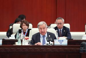(250901) -- TIANJIN, 1 septiembre, 2025 (Xinhua) -- El secretario general de la ONU, Antonio Guterres, asiste a la Reunión de la "Organización de Cooperación de Shanghai (OCS) Plus", en Tianjin, en el norte de China, el 1 de septiembre de 2025. La OCS inició el lunes por la tarde la Reunión "OCS Plus", que tiene lugar en la ciudad portuaria de Tianjin, en el norte de China. (Xinhua/Ding Haitao) (rtg) (ah) (ce)