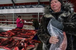 (250321) -- NUUK, 21 marzo, 2025 (Xinhua) -- Imagen del 19 de marzo de 2025 de personas comprando en un mercado de pescados, en Nuuk, Groenlandia, un territorio autónomo de Dinamarca. (Xinhua/Peng Ziyang) (rtg) (ra) (ce)