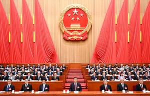 (250305) -- BEIJING, 5 marzo, 2025 (Xinhua) -- La XIV Asamblea Popular Nacional (APN) inicia su tercera sesión en el Gran Palacio del Pueblo, en Beijing, capital de China, el 5 de marzo de 2025. El presidente chino, Xi Jinping, y otros líderes, incluidos Li Qiang, Wang Huning, Cai Qi, Ding Xuexiang, Li Xi y Han Zheng se sentaron en la tribuna. (Xinhua/Li Xueren) (jg) (ah) (ce)