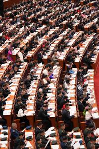 (250305) -- BEIJING, 5 marzo, 2025 (Xinhua) -- La reunión inaugural de la tercera sesión de la XIV Asamblea Popular Nacional (APN) se lleva a cabo en el Gran Palacio del Pueblo, en Beijing, capital de China, el 5 de marzo de 2025. (Xinhua/Zheng Huansong) (jg) (ah) (ce)