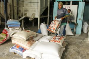 (260202) -- DAULE, 2 febrero, 2026 (Xinhua) -- Trabajadores empacan costales de arroz en una bodega, en el cantón Daule, Ecuador, el 2 de febrero de 2026. Desde el 1 de febrero entraron en vigor aranceles recíprocos del 30 por ciento entre Ecuador y Colombia, anunciados por ambos Gobiernos, en un contexto de tensión bilateral marcado por fricciones comerciales entre los dos países vecinos. (Xinhua/Str) (rl) (oa) (ah) (vf)