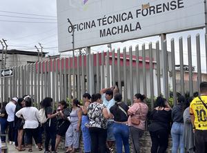 (251110) -- EL ORO, 10 noviembre, 2025 (Xinhua) -- Personas esperan por información de sus familiares después de los disturbios ocurridos en el Centro de Privación de Libertad de Machala, frente a la Oficina Técnica Forense de Machala, en la ciudad de Machala, en la provincia de El Oro, en el sur de Ecuador, el 10 de noviembre de 2025. El estatal Servicio de Atención a Personas Privadas de la Libertad de Ecuador confirmó el domingo la muerte de 27 presos por asfixia al interior de la cárcel de la ciudad de Machala, en la provincia costera de El Oro, en el sur del país, en medio de disturbios. (Xinhua/Str) (rl) (rtg) (ah) (ce)