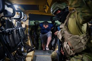 (250626) — GUAYAQUIL, 26 junio, 2025 (Xinhua) — Imagen del 25 de junio de 2025 de Adolfo Macías (c), alias «Fito», durante su traslado bajo resguardo militar al Centro de Rehabilitación Social La Roca, en Guayaquil, Ecuador. El presidente de Ecuador, Daniel Noboa, anunció el miércoles la reaprehensión de Adolfo Macías, alias «Fito», principal capo del narcotráfico en Ecuador y líder de la agrupación delictiva «Los Choneros», quien se fugó a inicios de enero de 2024 de una prisión de la ciudad de Guayaquil. (Xinhua/Str) (sa) (jg) (da) (ce)