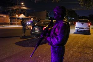 (260316) -- GUAYAS, 16 marzo, 2026 (Xinhua) -- Imagen del 15 de marzo de 2026 de militares realizando controles vehiculares durante un toque de queda decretado por el Gobierno ecuatoriano, en el cantón Durán, en la provincia de Guayas, Ecuador. Desde la noche del domingo hay vigente un toque de queda en cuatro provincias costeras de Ecuador afectadas por la violencia criminal, una medida decretada por el Gobierno para los próximos 16 días con el objetivo de reforzar la lucha contra el crimen organizado. (Xinhua/Str) (rl) (ah) (rtg) (ce)