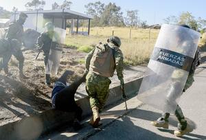 (250922) -- IMBABURA, 22 septiembre, 2025 (Xinhua) -- Elementos del Ejército de Ecuador detienen a un indígena en un bloqueo realizado por indígenas durante el paro nacional indefinido en rechazo a la reciente eliminación del subsidio al diésel, en la provincia de Imbabura, en el norte de Ecuador, el 22 de septiembre de 2025. El presidente de Ecuador, Daniel Noboa, afirmó el lunes que no cederá ante las presiones de ciertos grupos sociales que quieren desestabilizar el país, ante el paro nacional indefinido que inició el movimiento indígena en rechazo a la reciente eliminación del subsidio al diésel decretada por el Gobierno. (Xinhua/Ricardo Landeta) (rl) (oa) (ah) (vf)