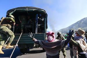(250922) -- IMBABURA, 22 septiembre, 2025 (Xinhua) -- Indígenas realizan un bloqueo durante el paro nacional indefinido en rechazo a la reciente eliminación del subsidio al diésel, en la provincia de Imbabura, en el norte de Ecuador, el 22 de septiembre de 2025. El presidente de Ecuador, Daniel Noboa, afirmó el lunes que no cederá ante las presiones de ciertos grupos sociales que quieren desestabilizar el país, ante el paro nacional indefinido que inició el movimiento indígena en rechazo a la reciente eliminación del subsidio al diésel decretada por el Gobierno. (Xinhua/Ricardo Landeta) (rl) (oa) (ah) (vf)