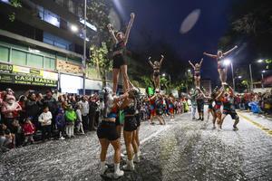 (250304) — QUITO, 4 marzo, 2025 (Xinhua) — Imagen del 3 de marzo de 2025 de jóvenes participando en el desfile de luces y colores como parte del festival de Carnaval, en la ciudad de Quito, capital de Ecuador. Ecuador vive con intensidad las fiestas de Carnaval a través de múltiples eventos culturales, coloridos festivales, juegos tradicionales y conciertos, en el marco de un feriado de cuatro días que inició el 1 de marzo. (Xinhua/Ricardo Landeta) (rl) (jg) (ra) (ce)