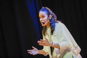 (250605) -- QUITO, 5 junio, 2025 (Xinhua) -- Imagen del 4 de junio del 2025 de Janis Zambrano interpretando una canción durante el XXIV Concurso Puente Chino: Competencia de Proficiencia en Chino para Estudiantes Universitarios Extranjeros, ronda preliminar nacional en Ecuador, llevado a cabo en el Instituto Confucio de la Universidad San Francisco de Quito (USFQ), en la ciudad de Quito, capital de Ecuador. La joven ecuatoriana Janis Zambrano, estudiante del Instituto Confucio de la USFQ, representará a Ecuador en la final mundial del concurso Puente Chino, que se realizará próximamente en China. (Xinhua/Ricardo Landeta) (rl) (jg) (da) (ce)