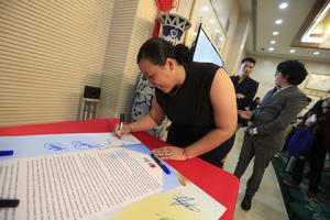 (250823) — QUITO, 23 agosto, 2025 (Xinhua) — Imagen del 21 de agosto de 2025 de una estudiante becada firmando la «Iniciativa Mundial de la Juventud por la Paz» durante una despedida en honor a los becarios ecuatorianos previa a su viaje a China, en la ciudad de Quito, capital de Ecuador. Un grupo de 40 estudiantes ecuatorianos accedió a becas para estudios de educación superior de tercer y cuarto nivel, así como para estudiar el idioma chino, ofertadas por el Gobierno de China dentro de un programa de cooperación con el país sudamericano, informó la encargada de Negocios interina de la Embajada de China en Ecuador, Wei Lin. (Xinhua/Ricardo Landeta) (rl) (oa) (da)