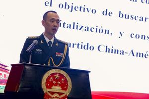 (250730) -- QUITO, 30 julio, 2025 (Xinhua) -- Imagen del 29 de julio 2025 del agregado de defensa de la Embajada de China en Ecuador, coronel superior Liu Yijian, hablando en una recepción en conmemoración del 98° aniversario de la fundación del Ejército Popular de Liberación (EPL) de China, en la ciudad de Quito, capital de Ecuador. La Embajada de China en Ecuador celebró el martes una recepción en conmemoración del 98° aniversario de la fundación del EPL de China. (Xinhua/Ricardo Landeta) (rl) (jg) (da) (ce)