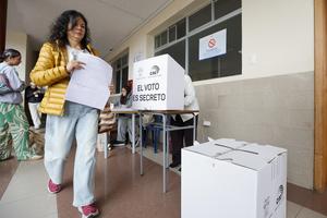 (251116) -- QUITO, 16 noviembre, 2025 (Xinhua) -- Una persona emite su voto durante la jornada electoral en el Colegio San Gabriel, en Quito, capital de Ecuador, el 16 de noviembre de 2025. Los colegios electorales en Ecuador abrieron el domingo a las 07:00 hora local (12:00 GMT) para las votaciones de la consulta popular y referendo constitucional impulsados por el Gobierno sobre temas políticos y de seguridad nacional. (Xinhua/Ricardo Landeta) (rl) (rtg) (da)