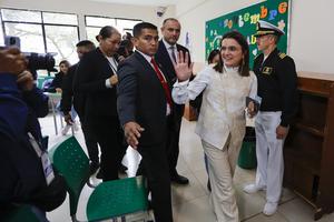 (251116) -- QUITO, 16 noviembre, 2025 (Xinhua) -- La vicepresidenta ecuatoriana, María José Pinto (2-d), se retira del colegio electoral después de emitir su voto durante la jornada electoral en la Unidad Educativa Sagrados Corazones de Rumipamba, en Quito, capital de Ecuador, el 16 de noviembre de 2025. Los colegios electorales en Ecuador abrieron el domingo a las 07:00 hora local (12:00 GMT) para las votaciones de la consulta popular y referendo constitucional impulsados por el Gobierno sobre temas políticos y de seguridad nacional. (Xinhua/Ricardo Landeta) (rl) (rtg) (da)
