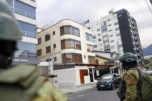(260304) -- QUITO, 4 marzo, 2026 (Xinhua) -- Militares ecuatorianos vigilan frente a la Embajada de Cuba en Ecuador, en Quito, capital de Ecuador, el 4 de marzo de 2026. El Gobierno ecuatoriano declaró el miércoles persona "non grata" al embajador de Cuba en Ecuador, Basilio Antonio Gutiérrez García, así como a todos los miembros del personal diplomático, consular y administrativo de esa Misión Diplomática, informó el Ministerio de Relaciones Exteriores y Movilidad Humana. (Xinhua/Ricardo Landeta) (rl) (ra) (ah) (vf)