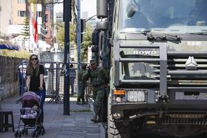 (250414) -- QUITO, 14 abril, 2025 (Xinhua) -- Una mujer empuja una carriola mientras camina junto a un militar frente al Consejo Nacional Electoral (CNE), en la ciudad de Quito, capital de Ecuador, el 14 de abril de 2025. El presidente de Ecuador, Daniel Noboa, fue reelegido en la segunda vuelta de las elecciones celebradas el domingo para un nuevo mandato de cuatro años, con el 92,64 por ciento de las actas escrutadas, según los primeros resultados oficiales difundidos por el CNE. (Xinhua/Ricardo Landeta) (rl) (rtg) (ah) (vf)