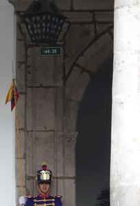 (250205) -- QUITO, 5 febrero, 2025 (Xinhua) -- Un miembro del Grupo Escolta Presidencial Granaderos de Tarqui monta guardia en el Palacio de Carondelet, en la ciudad de Quito, capital de Ecuador, el 5 de febrero de 2025. Más de 13,7 millones de electores, dentro y fuera del país, están convocados a las urnas para elegir presidente y vicepresidente, así como 151 legisladores que integrarán la Asamblea Nacional y cinco representantes al Parlamento Andino. (Xinhua/Carolina Endara) (ce) (jg) (da) (vf)