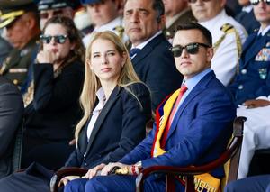 (251126) -- QUITO, 26 noviembre, 2025 (Xinhua) -- El presidente ecuatoriano, Daniel Noboa (d-frente), y la primera dama ecuatoriana, Lavinia Valbonesi (i-frente), asisten a una ceremonia de posesión del nuevo alto mando de las Fuerzas Armadas celebrada en la Escuela Superior Militar "Eloy Alfaro", en el norte de Quito, capital de Ecuador, el 26 de noviembre de 2025. Noboa oficializó el miércoles los cambios en la cúpula militar con la posesión del nuevo alto mando de las Fuerzas Armadas en una ceremonia en la que ratificó su respaldo a la institución en la lucha contra el crimen organizado, que afecta al país. (Xinhua/Ricardo Landeta) (rl) (ah) (ra) (vf)