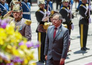 (250524) -- QUITO, 24 mayo, 2025 (Xinhua) -- El presidente de Colombia, Gustavo Petro (frente), llega a la ceremonia de toma de juramento del presidente reelecto ecuatoriano Daniel Noboa, en la ciudad de Quito, capital de Ecuador, el 24 de mayo de 2025. Noboa, un millonario empresario de 37 años, tomó el sábado juramento para un segundo mandato presidencial en Ecuador, el primero que completará en su totalidad hasta el 2029, en un acto protocolar realizado en la sede de la Asamblea Nacional (Parlamento), en Quito. (Xinhua/Ricardo Landeta) (rl) (jg) (da)