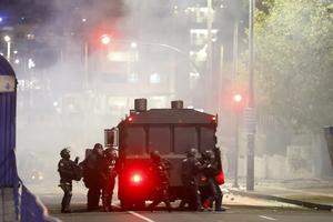(251015) -- QUITO, 15 octubre, 2025 (Xinhua) -- Policías se cubren en un enfrentamiento con manifestantes durante una protesta en el marco del paro nacional, en Quito, capital de Ecuador, el 15 de octubre de 2025. (Xinhua/Ricardo Landeta) (rl) (vf) (ce)