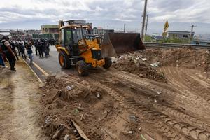 (250916) -- QUITO, 16 septiembre, 2025 (Xinhua) -- Maquinaria retira escombros colocados como barricada durante una protesta por la eliminación del subsidio al diésel, en Quito, capital de Ecuador, el 16 de septiembre de 2025. El presidente de Ecuador, Daniel Noboa, decretó el martes estado de excepción por 60 días en siete provincias del país por "grave conmoción interna", derivada de las protestas y bloqueos de carreteras iniciados la víspera por gremios de transportistas en rechazo a la reciente eliminación del subsidio al diésel. (Xinhua/Ricardo Landeta) (rl) (jg) (ra) (ce)