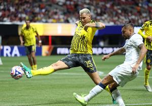 (250702) -- ATLANTA, 2 julio, 2025 (Xinhua) -- Imagen del 1 de julio de 2025 de Niklas Suele (i), de Borussia Dortmund, disputando el balón durante el partido de octavos de final entre Borussia Dortmund, de Alemania, y CF Monterrey, de México, en la Copa Mundial de Clubes de la FIFA 2025, en el Mercedes-Benz Stadium, en Atlanta, Georgia, Estados Unidos. (Xinhua/Li Ming) (ra) (ce)