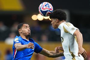 (250617) — ATLANTA, 17 junio, 2025 (Xinhua) — Imagen del 16 junio de 2025 de David Martínez (d), de Los Angeles FC, cabeceando el balón durante el partido del Grupo D entre Chelsea, de Inglaterra, y Los Angeles FC, de Estados Unidos, en la Copa Mundial de Clubes de la FIFA 2025, en Atlanta, Estados Unidos. (Xinhua/Xu Chang) (oa) (ra) (ce)