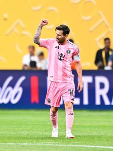 (250620) -- ATLANTA, 20 junio, 2025 (Xinhua) -- Imagen del 19 de junio de 2025 de Lionel Messi, de Inter Miami CF, festejando su anotación durante el partido del Grupo A entre Inter Miami CF, de Estados Unidos, y FC Porto, de Portugal, en la Copa Mundial de Clubes de la FIFA 2025, en Atlanta, Estados Unidos. (Xinhua/Chen Yichen) (rtg) (ra) (vf)