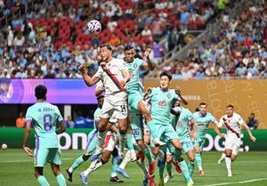(250623) -- ATLANTA, 23 junio, 2025 (Xinhua) -- Imagen del 22 junio de 2025 de Nico González (i-arriba), de Manchester City, y Soufiane Rahimi (d-arriba), de Al Ain, disputando el balón durante el partido del Grupo G entre Manchester City, de Inglaterra, y Al Ain, de EAU, en la Copa Mundial de Clubes de la FIFA 2025, en Atlanta, Estados Unidos. (Xinhua/Chen Yichen) (oa) (rtg) (ce)
