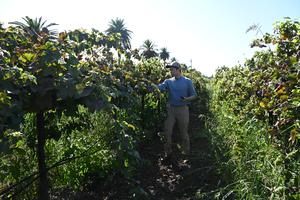 (251001) -- LODI, 1 octubre, 2025 (Xinhua) -- Imagen del 27 de septiembre de 2025 de Han Han, director de elaboración de vinos de Bear Creek Winery, inspeccionando los viñedos, en Lodi, California, Estados Unidos. A principios de este año, la administración estadounidense anunció un arancel adicional del 25 por ciento a las importaciones procedentes de Canadá, lo que llevó a Canadá a tomar represalias con aranceles sobre una variedad de productos estadounidenses. (Xinhua/Wen Tsui) (ah) (vf)