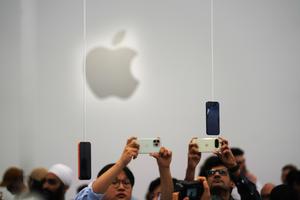 (250910) -- SAN FRANCISCO, 10 septiembre, 2025 (Xinhua) -- Imagen del 9 de septiembre de 2025 de personas tomando fotografías de los nuevos productos de Apple después de su lanzamiento, en Cupertino, California, Estados Unidos. Apple Inc. anunció el martes una serie de nuevos productos iPhone y auriculares inalámbricos, incluyendo el iPhone 17, el nuevo iPhone Air y los AirPods Pro 3. (Xinhua/Wu Xiaoling) (jg) (da)
