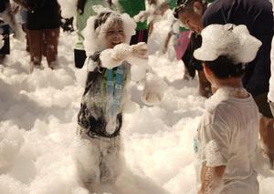(250720) -- POMONA, 20 julio, 2025 (Xinhua) -- Imagen del 19 de julio de 2025 de niños participando en la Carrera de Burbujas, en Pomona, condado de Los Angeles, California, Estados Unidos. La Carrera de Burbujas anual se llevó a cabo el sábado en el Pomona Fairplex (Xinhua/Zeng Hui) (oa) (ah)