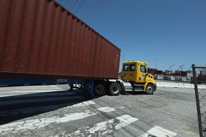 (250429) -- PUERTO DE LOS ANGELES, 29 abril, 2025 (Xinhua) -- Un camión es visto en el puerto de Los Angeles, California, Estados Unidos, el 29 de abril de 2025. El Puerto de Los Angeles, el más grande y con mayor actividad de Estados Unidos, prevé una caída del 35 por ciento en los envíos procedentes de Asia la próxima semana, dijo el martes a los medios de comunicación el director ejecutivo del puerto. (Xinhua/Qiu Chen) (jg) (ra) (vf)