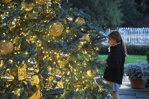 (251125) — WOODSIDE, 25 noviembre, 2025 (Xinhua) — Imagen del 24 de noviembre de 2025 de una niña observando una decoración luminosa en un espectáculo de luces, en Woodside, California, Estados Unidos. El espectáculo de luces, denominado «Vacaciones en Filoli», se celebrará del 22 de noviembre de 2025 al 11 de enero de 2026 en la Casa y Jardín Históricos Filoli de Woodside. (Xinhua/Liu Yilin) (oa) (ah) (ce)
