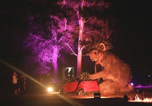 (251005) -- WOODSIDE, 5 octubre, 2025 (Xinhua) -- Imagen del 3 de octubre de 2025 de personas observando una estatua gigante durante el evento Nightfall en la Casa y Jardín Históricos Filoli, en Woodside, California, Estados Unidos. La segunda edición de Nightfall se inauguró aquí el viernes y durará hasta el 10 de noviembre. (Xinhua/Liu Yilin) (oa) (ah)