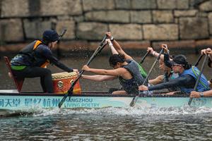 (250609) -- CAMBRIDGE, 9 junio, 2025 (Xinhua) -- Imagen del 8 de junio de 2025 de participantes compitiendo en el Festival del Bote del Dragón de Boston, en Cambridge, Massachusetts, Estados Unidos. (Xinhua/Ziyu Julian Zhu) (oa) (rtg) (vf)