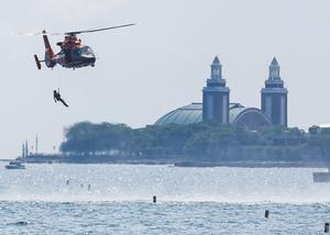 (250818) -- CHICAGO, 18 agosto, 2025 (Xinhua) -- Imagen del 17 de agosto de 2025 de miembros del Servicio de Búsqueda y Rescate de la Guardia Costera de Estados Unidos realizando una demostración en el Espectáculo Aéreo y Acuático de Chicago 2025, en Chicago, Estados Unidos. (Xinhua/Joel Lerner) (oa) (ah) (ce)