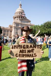 (250615) -- AUSTIN, 15 junio, 2025 (Xinhua) -- Imagen del 14 de junio de 2025 de una mujer participando en la protesta "No Kings", en Austin, Texas, Estados Unidos. El presidente estadounidense, Donald Trump, organizó el sábado un desfile militar en Washington para conmemorar el 250 aniversario del Ejército con la participación de más de 6.000 soldados, 120 vehículos y un sobrevuelo. El desfile, con un coste reportado de unos 45 millones de dólares estadounidenses, tuvo lugar en medio de las protestas nacionales "No Kings" organizadas para "(rechazar) el autoritarismo, la política multimillonaria y la militarización de nuestra democracia" por parte de la administración Trump. (Xinhua/Christopher Davila) (oa) (da)